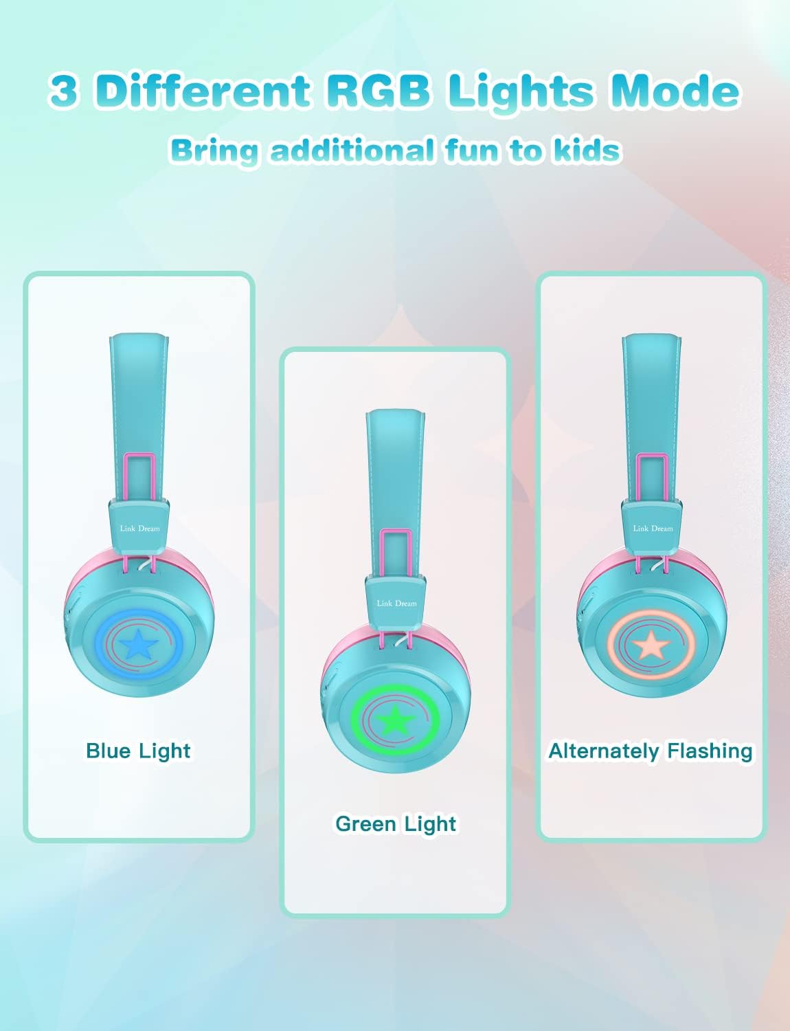 Let your child’s personality shine with three customizable LED lighting modes. Switch between Steady Blue, Vibrant Green, or an Alternately Flashing mode with a simple touch. These playful lighting effects add a layer of fun to the listening experience, making the headset as visually exciting as it is functional.