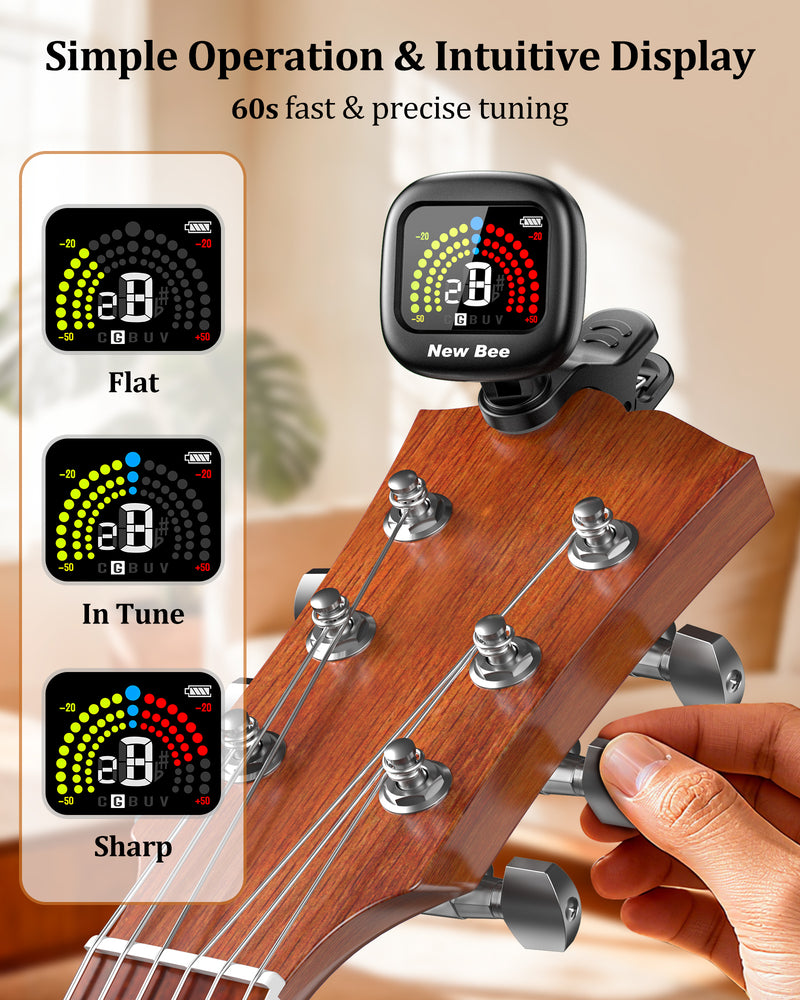 Engineered with an advanced digital processor and high-sensitivity piezo sensor, the New bee guitar tuner delivers exceptionally fast response and studio-accurate tuning for guitar, bass, violin, ukulele, and a wide range of other instruments