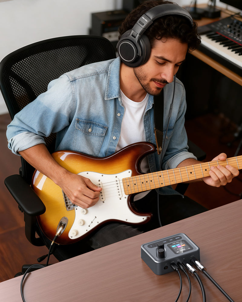 USB audio interface with stereo audio transmission, compatible with OTG function to connect directly to iOS/Android mobile devices, BT audio connection, compatible with multi-track recording on conventional DAWs with adjustable parameters after recording.